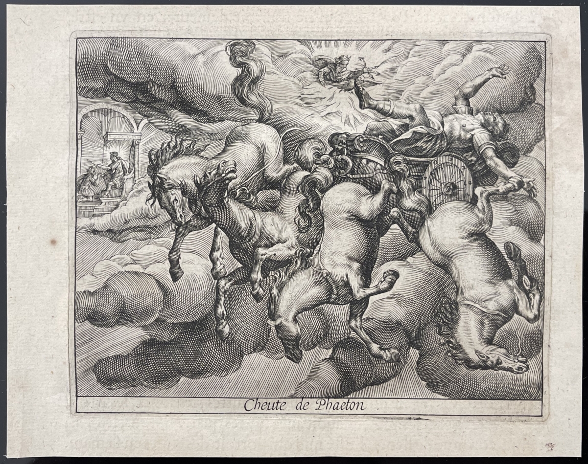Je vous propose cette gravure au burin XVIIe. Chute de Phaéthon par Jean Matheus (c. 1590â??1672). Tirage 1619 XVII.
