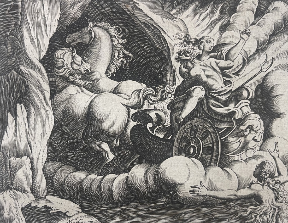 Je vous propose cette gravure au burin XVIIe. Rapt de Proserpine par Jean Matheus (c. 1590??1672). Tirage 1619 XVII.