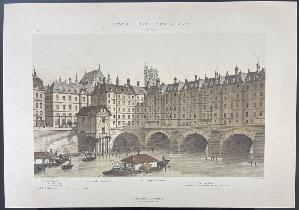 Grand Chatelet et Pont au Change 1647-1788 lithographie XIXe