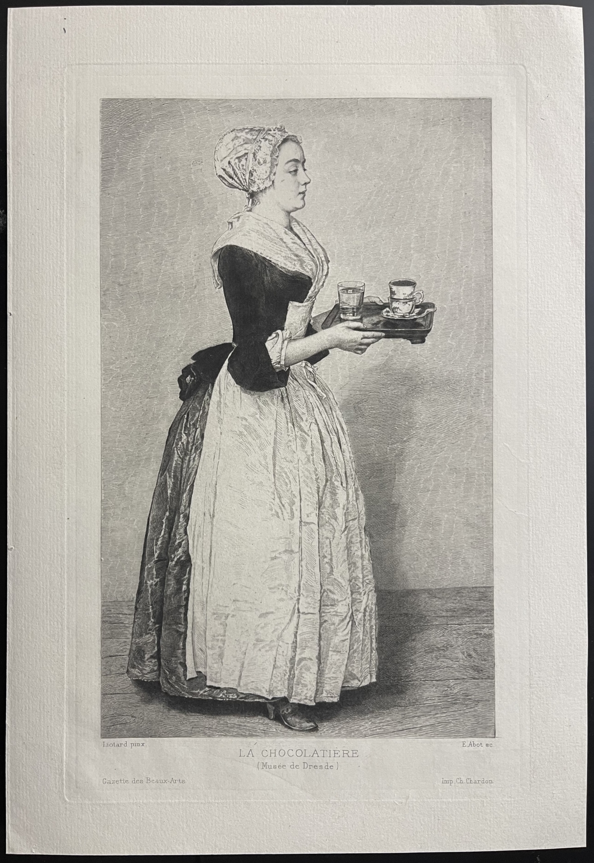 Jean-Etienne Liotard La belle chocolatie�?re gravure de 1888 Chocolat France