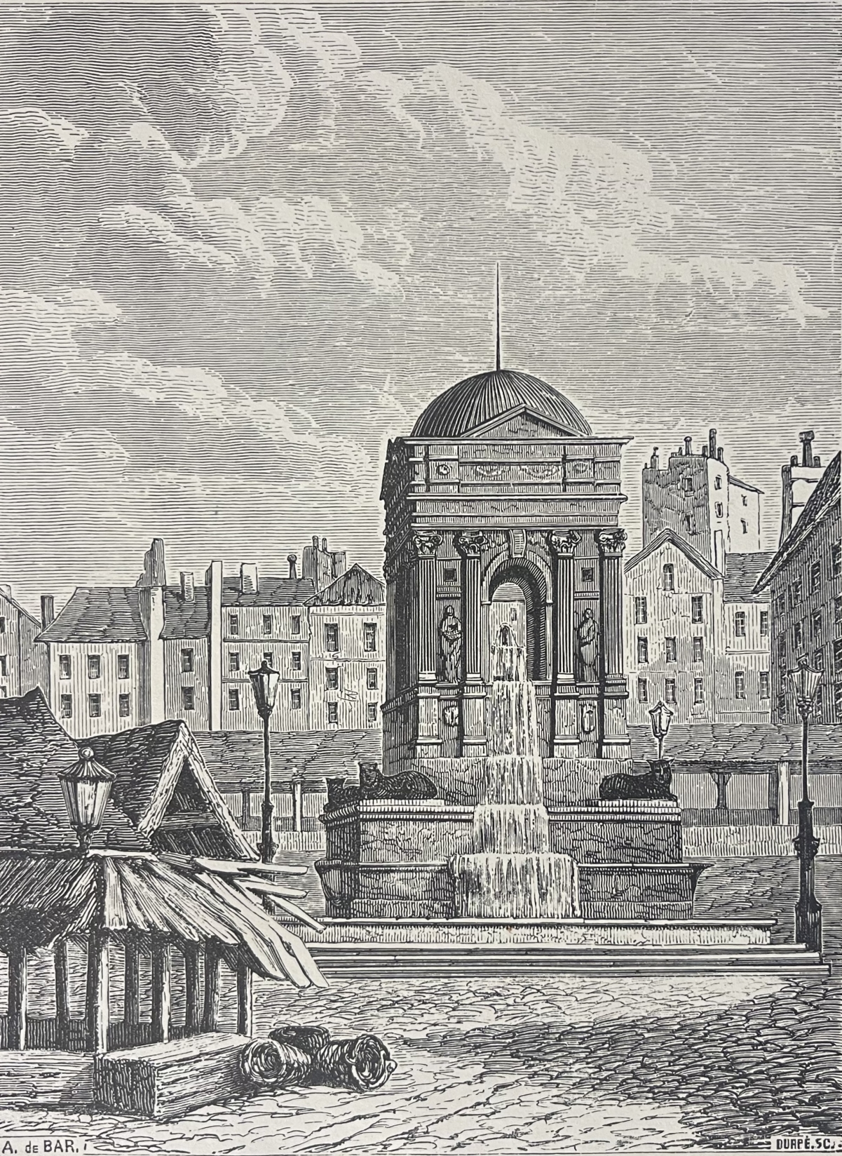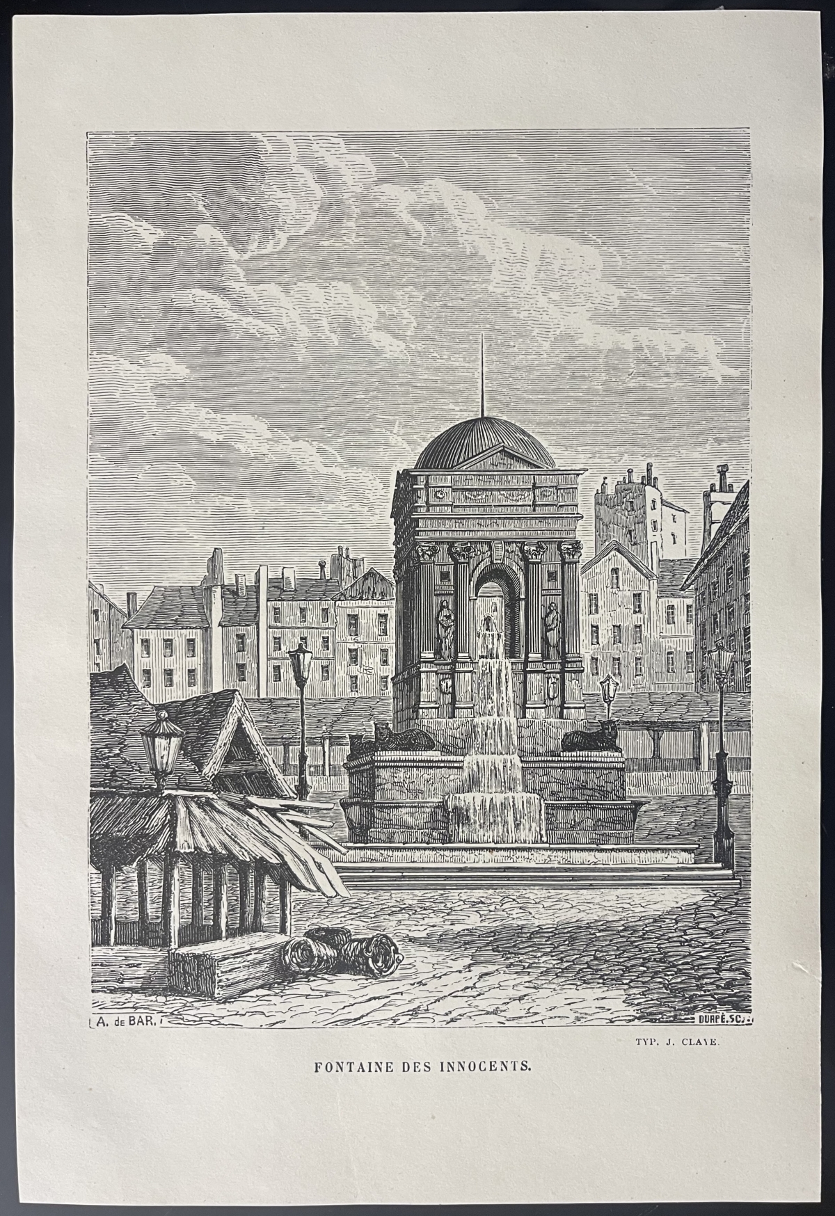Paris fontaine de innocents place Joachim-du-Bellay gravure 1845 France
