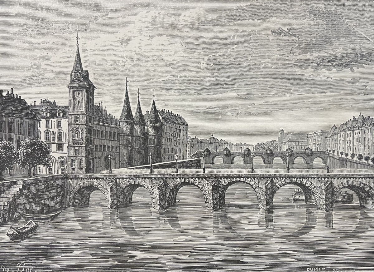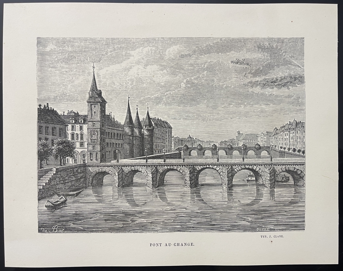 Paris pont au Change i�?le de la Cité gravure 1845 France