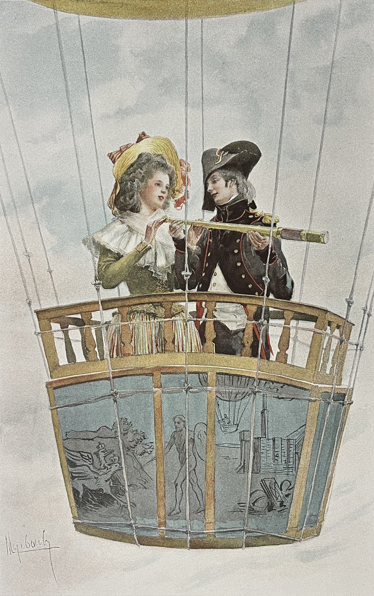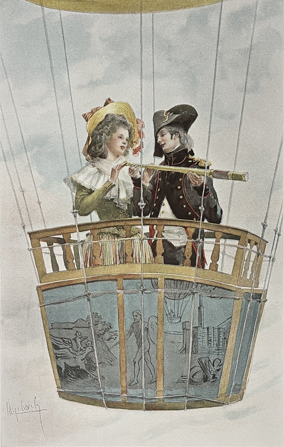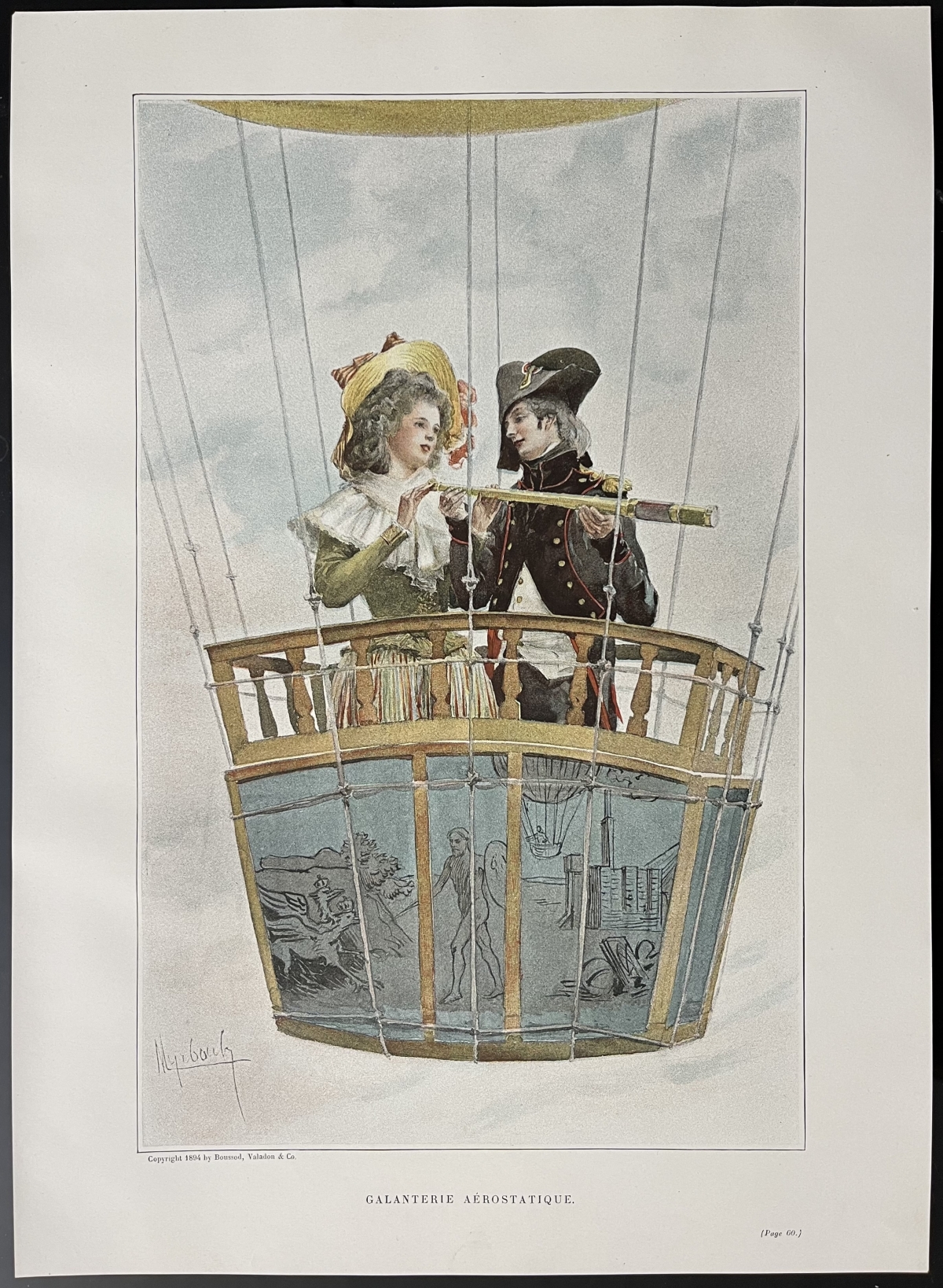 Ballon monté aérostat 1794 Galanterie aérostatique procédé de 1894