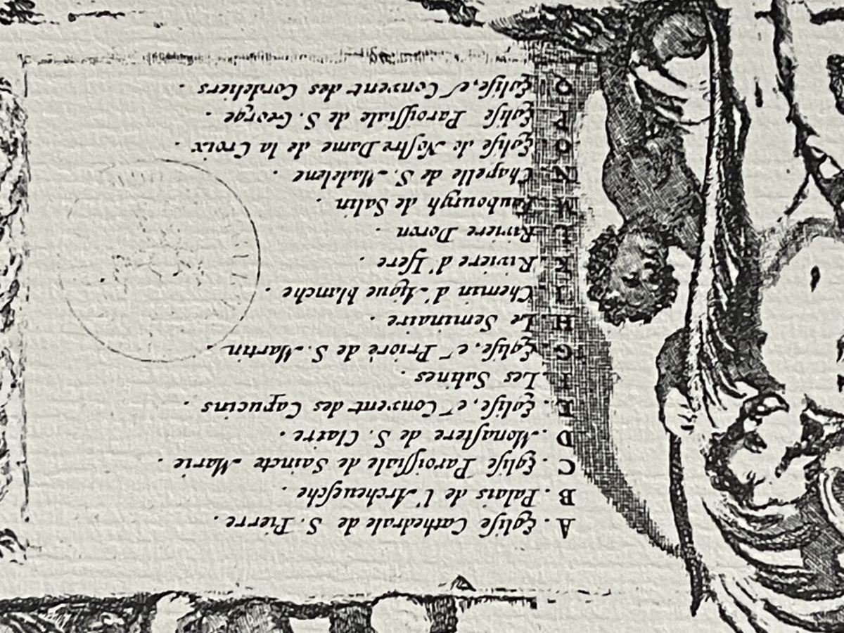 Collée sur les bords sur vélin fort 56 cm par 38,7 cm, la représentation de la gravure seule fait 43 cm x 34 cm.