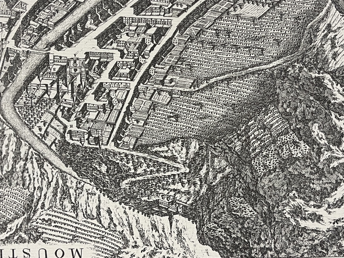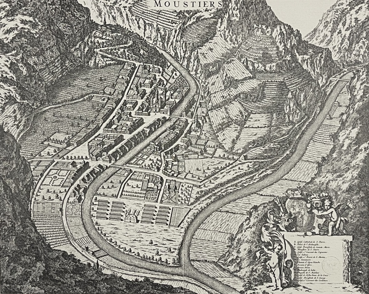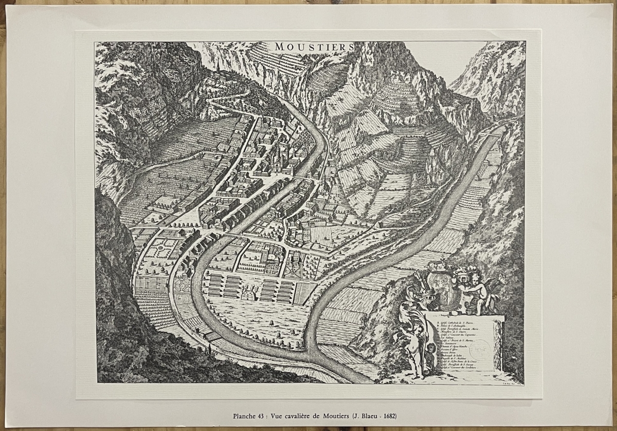 Je vous propose cette gravure représentant Moutiers en 1682 Savoie. Tirage vers 1970