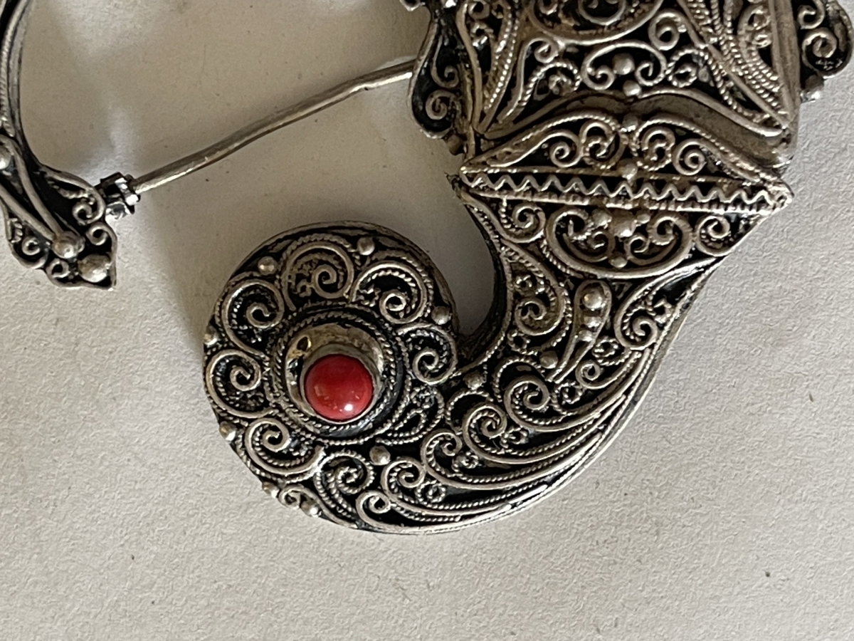 Yémen collier à grelots et talisman début XXe en argent bas titre AL-YAMAN Je vous propose ce collier à grelot. Défait, il dimensionne 56 cm de long, pour 6,5 cm de ...