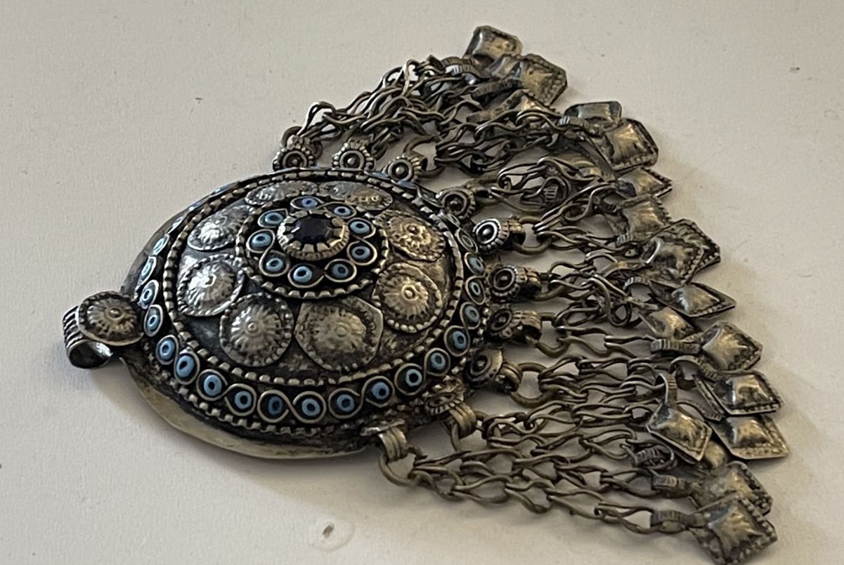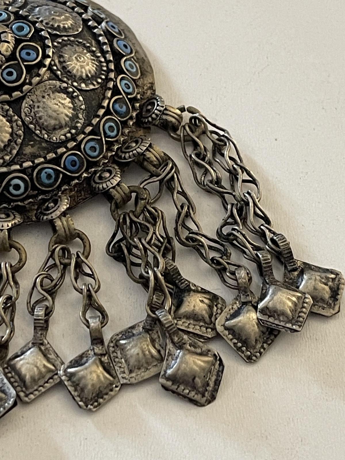 Je vous propose ce pendentif tribal amulette apotropaïque entre 1880â??1930 Kuchi ou Baloutche (Afghanistan ou Pakistan).