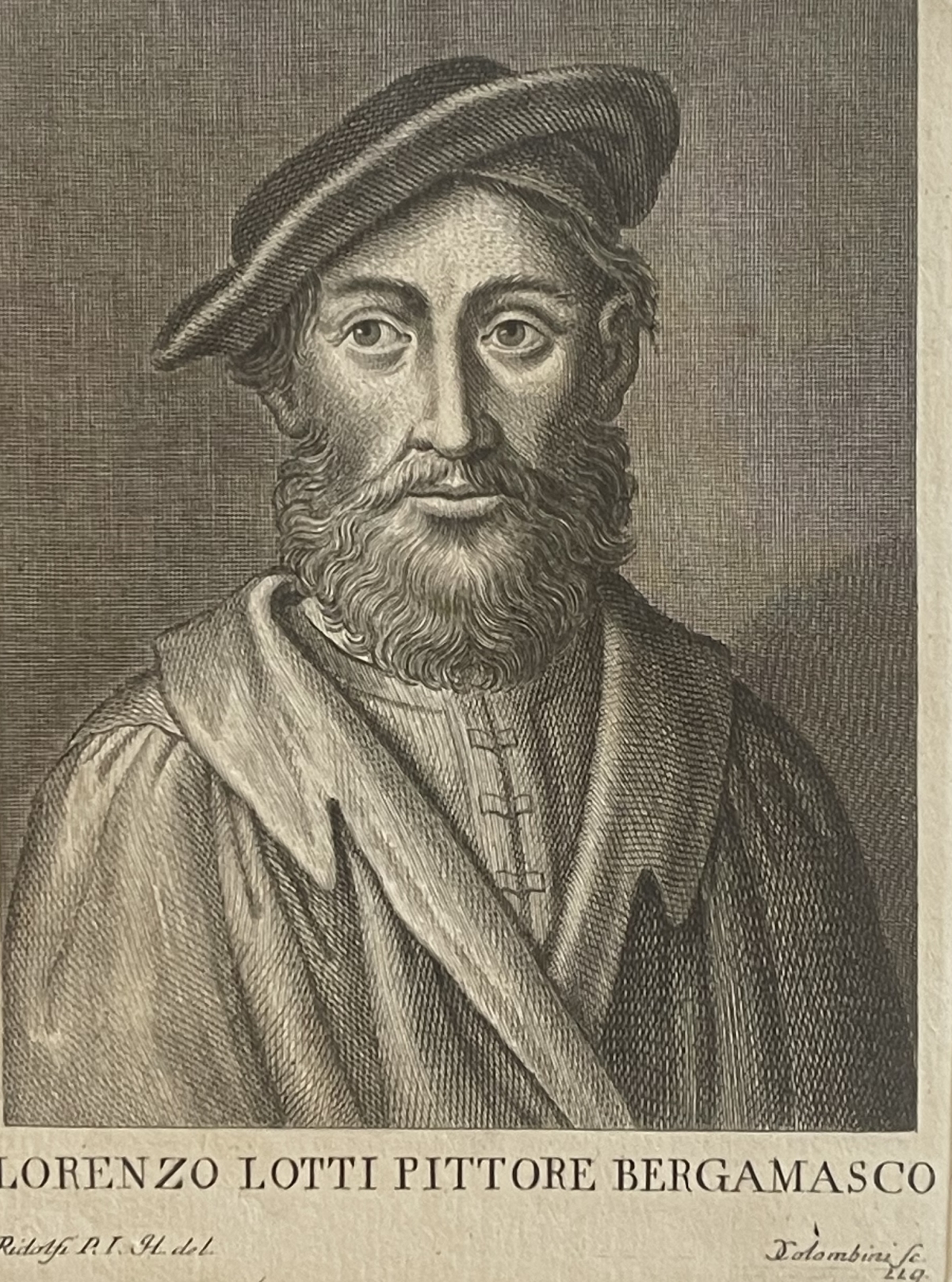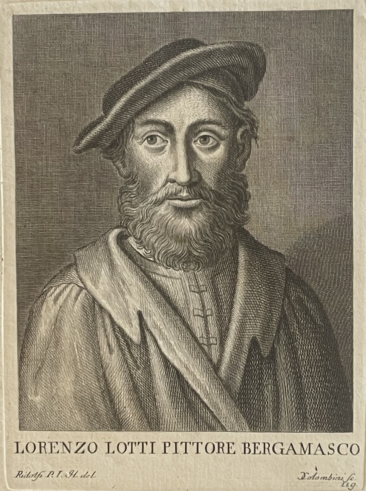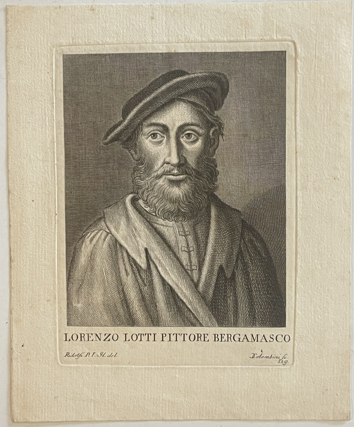 Je vous propose cette Superbe gravure originale du XVIIIe siècle, représentant Lorenzo Lotto (1480â??1556) peintre de la Renaissance italie né à Bergame.