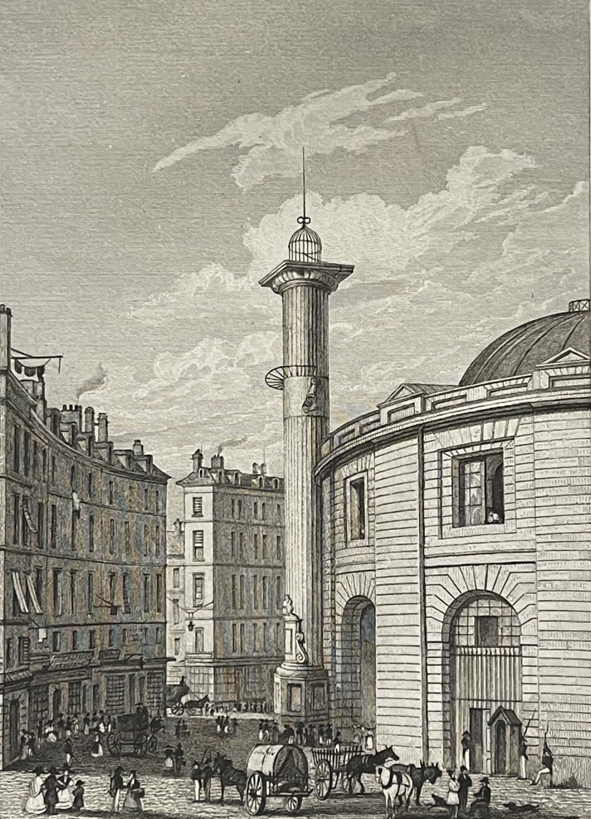 PARIS Halle au blé Bourse de commerce gravure de 1831.