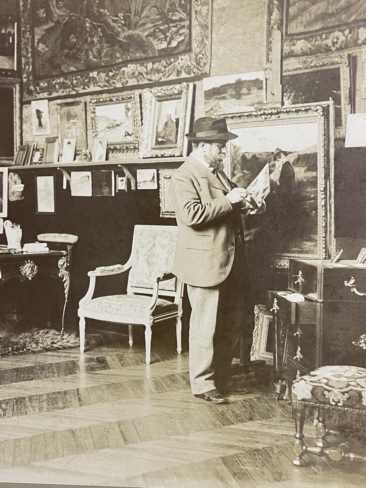 Je vous propose ce tirage albuminé original. atelier ou un salon d'artiste. Marouflée sur carton 30,7 cm par 20,8 cm, la photo seule 24 cm par 17,4 cm. Pour spécialiste ou grand amateur !
