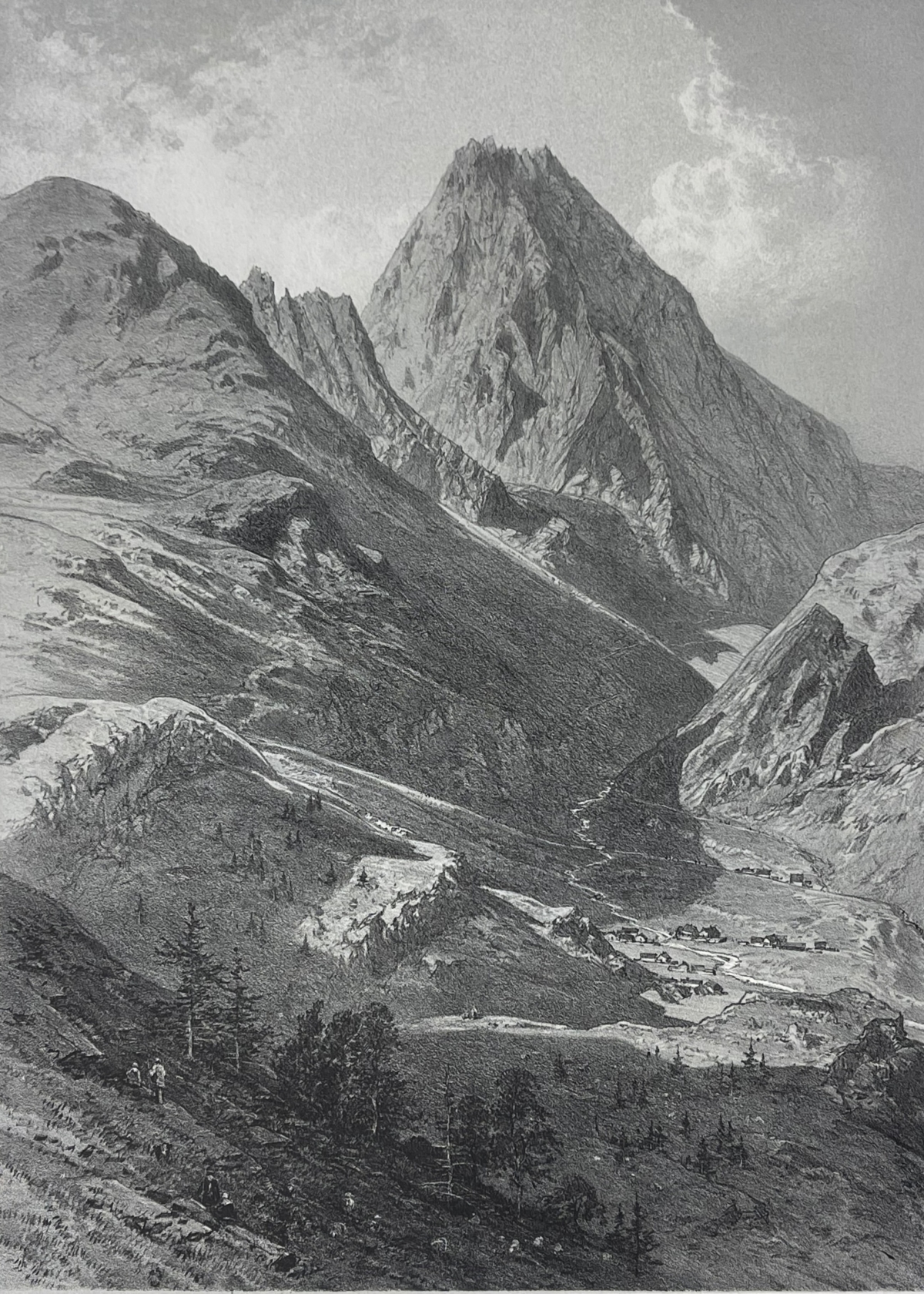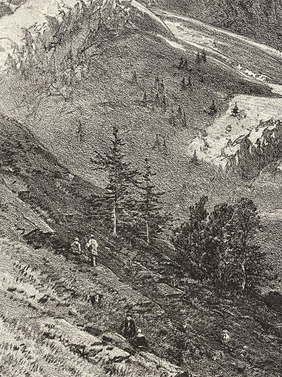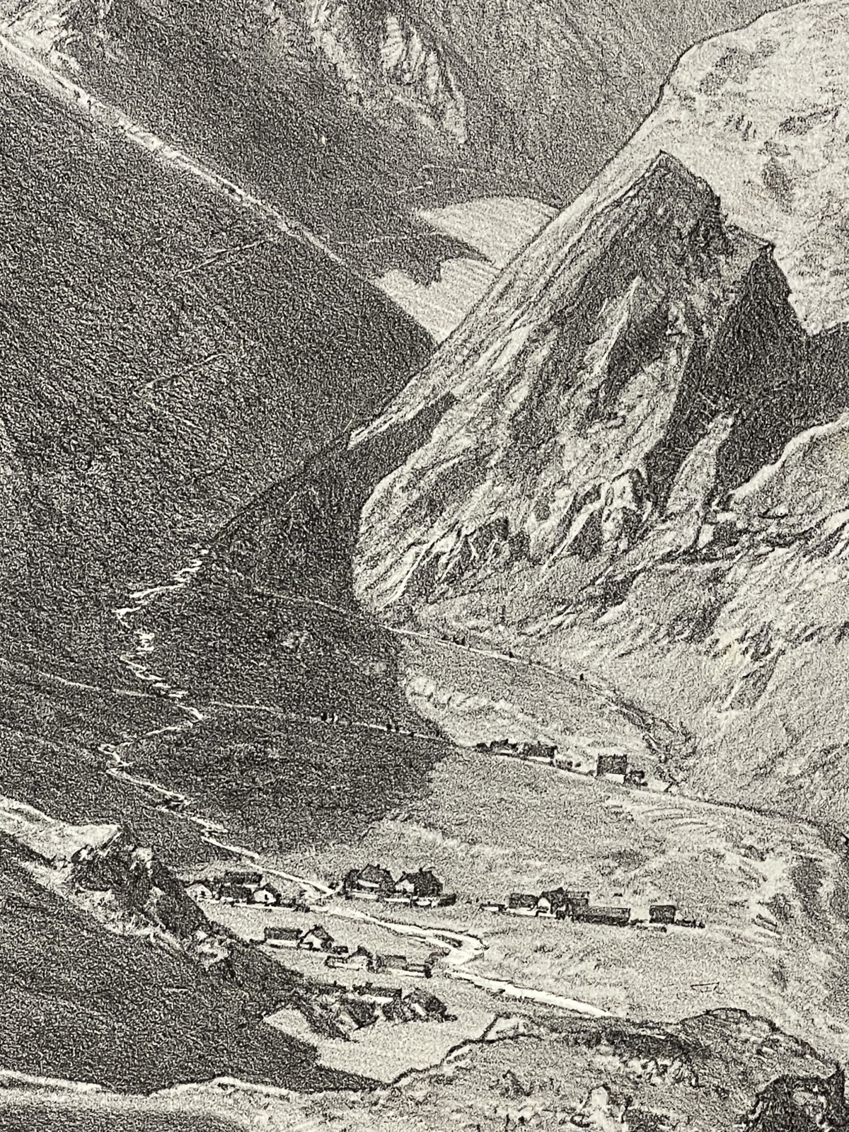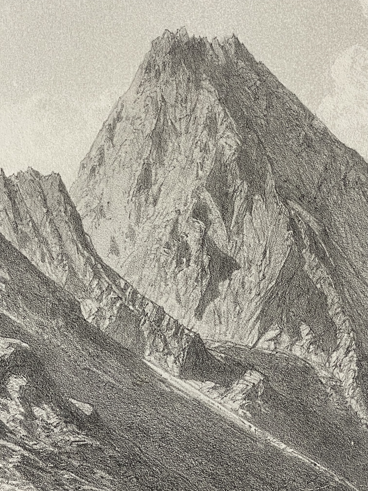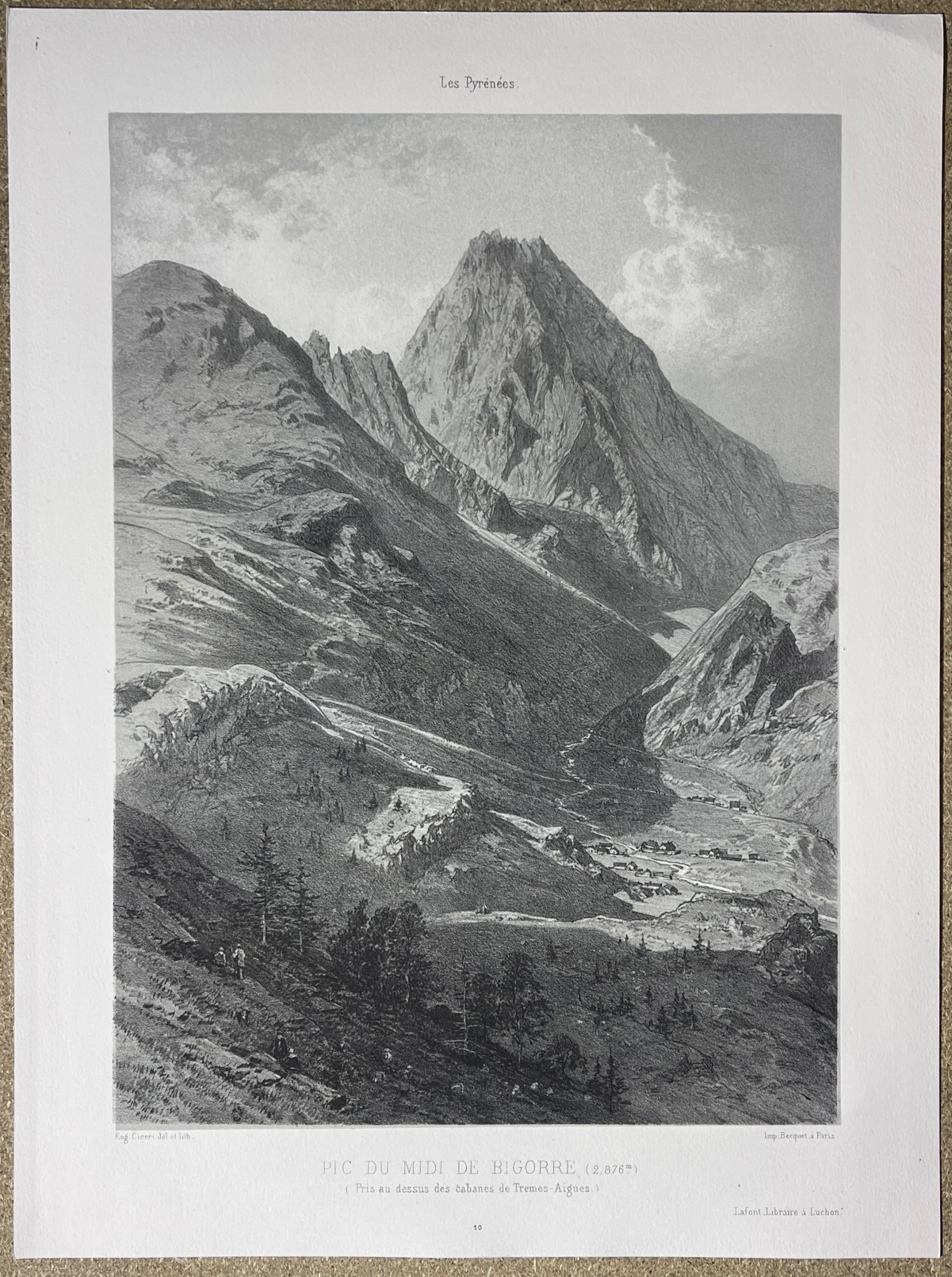 Je vous propose cette lithographie originale représentant le Pic du Midi de Bigorre (2 876 m), vue prise au-dessus des cabanes de Trames-Aigues, dessinée et lithographiée par Eugène Ciceri. Cette lithographie de paysage, datable vers 1875-1885, offre une vision précise et pittoresque du massif pyrénéen avant l'édification de l'observatoire, avec un relief puissamment modelé, des vallées pastorales animées de figures et de hameaux. d'observation et d'exploration.