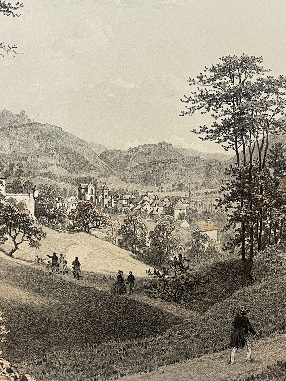 Je vous propose cette lithographie originale vers 1864 représentant Saint-Jeoire et Château de Beauregard Haute-Savoie lithographie de Félix Benoist.