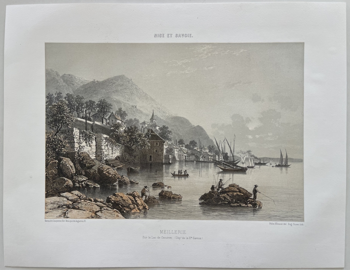 Antique Meillerie Lake Geneva Lithograph Haute Savoie France 1864