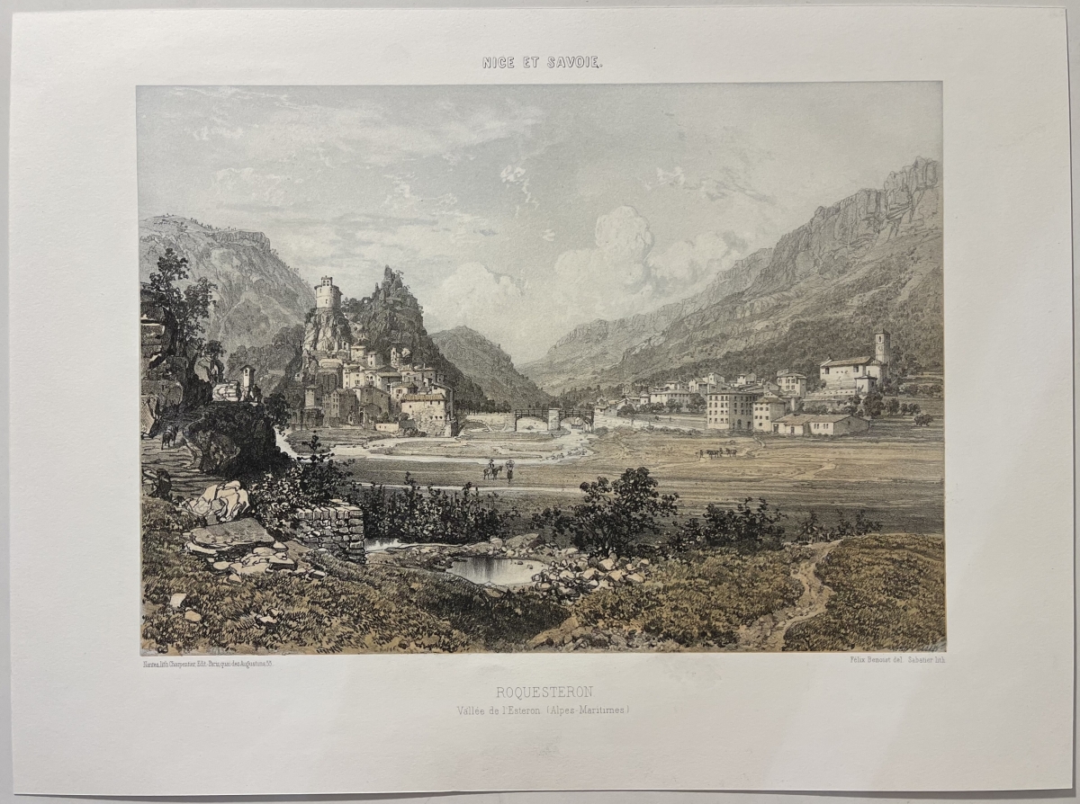 Je vous propose cette belle lithographie de 1864 représentant Roquestéron, dans la vallée de l'Estéron (Alpes-Maritimes).