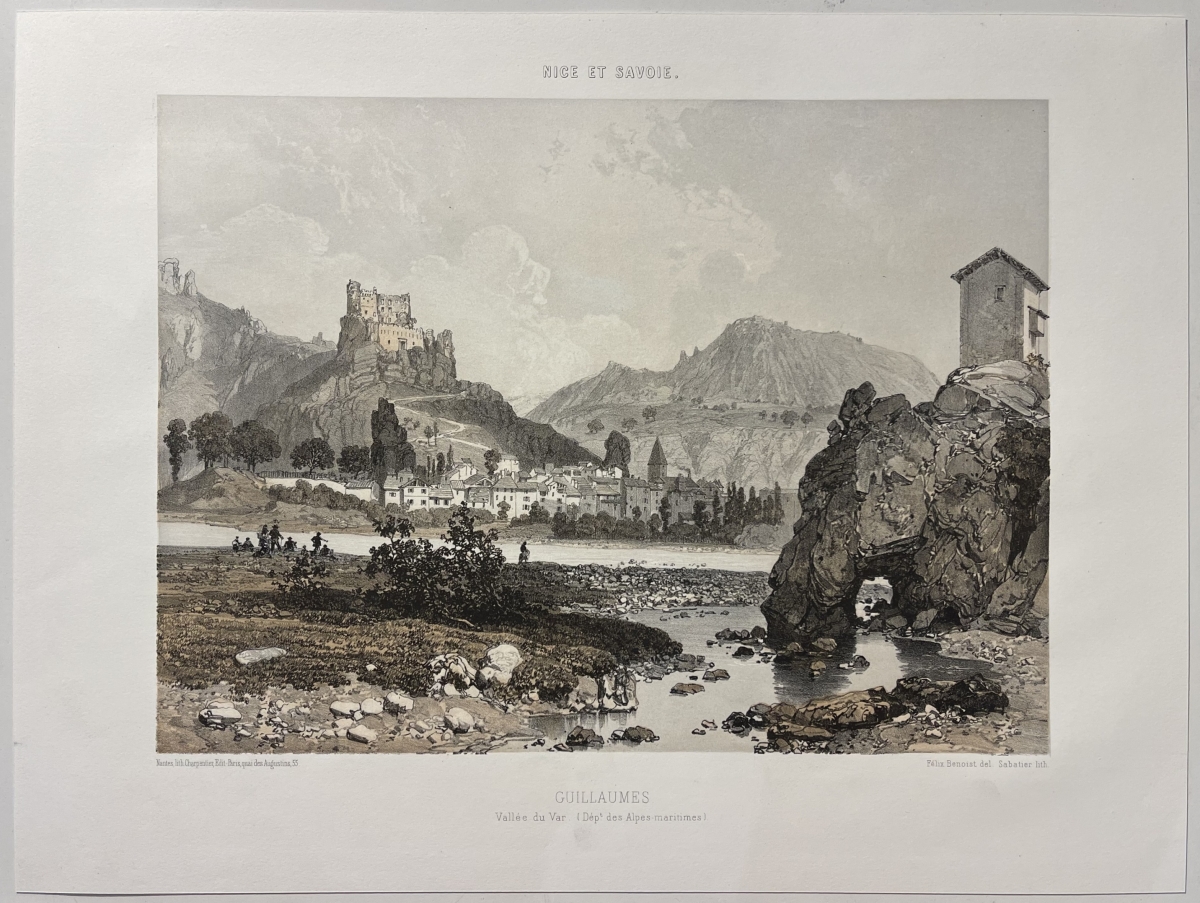 Je vous propose cette belle lithographie de 1864 représentant Guillaumes, dans la vallée du Var (Alpes-Maritimes).