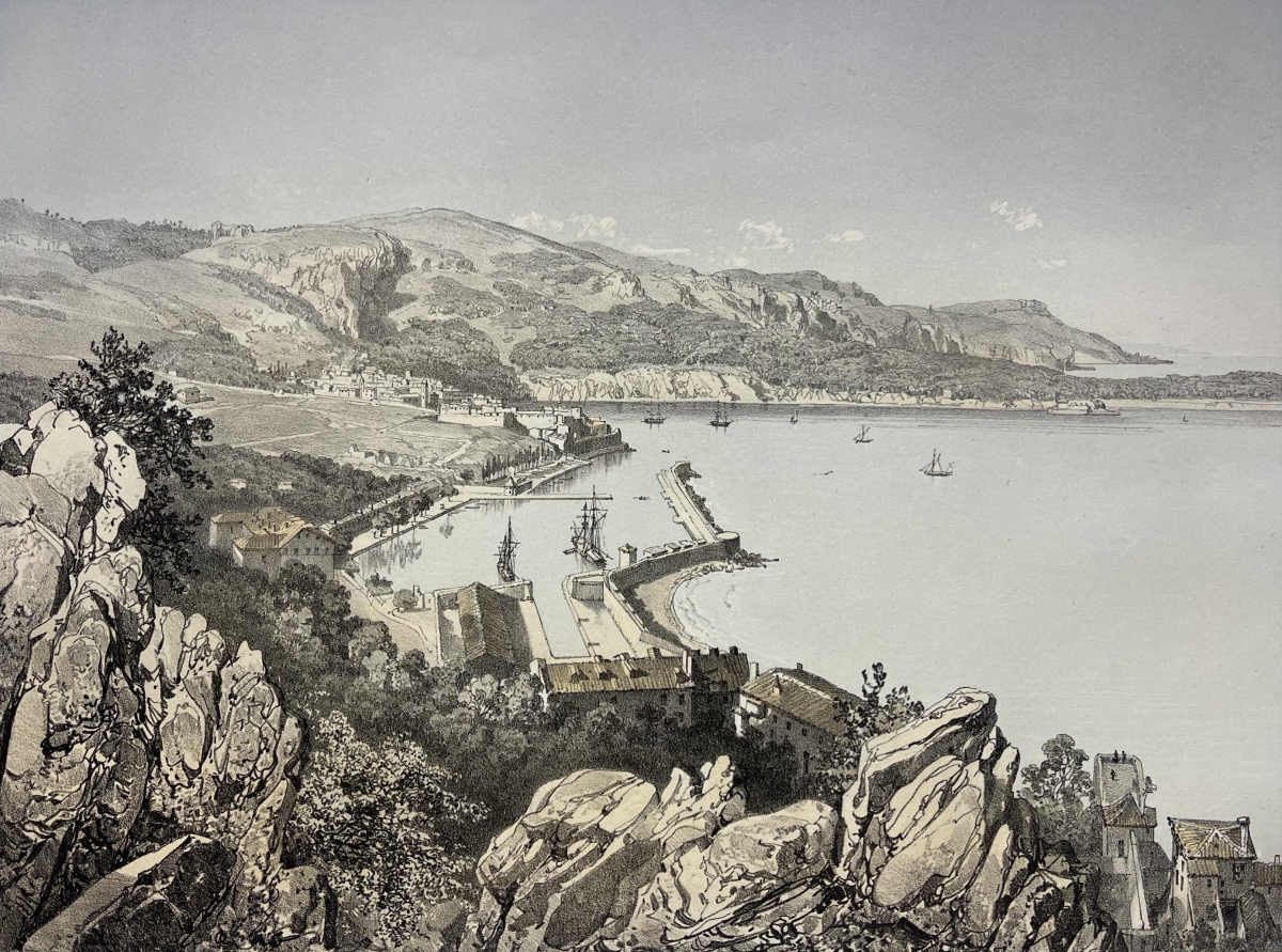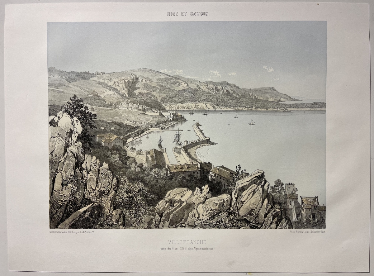 VILLEFRANCHE près de Nice lithographie Alpes-Maritimes 1864 France